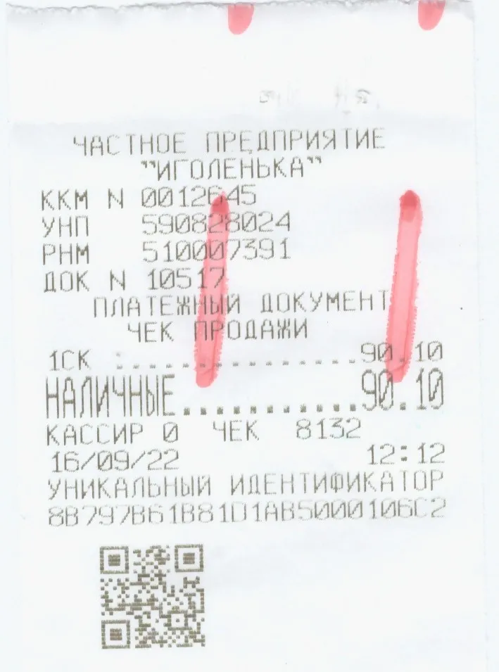 Образцы чеков магазина Иголенька: